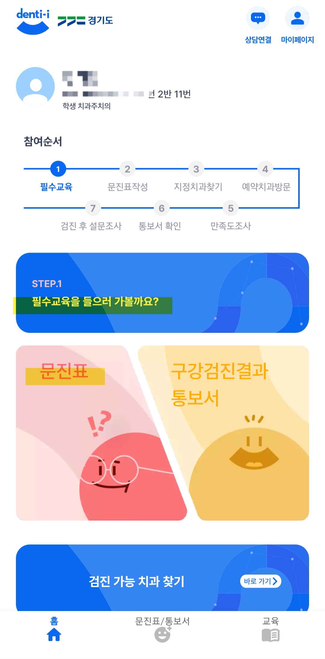 덴티아이 경기어플을 통해 초등학생 구강검진 치과주치의사업에 참여하여 우리아이 구강 건강을 미리 점검하길 바랍니다.