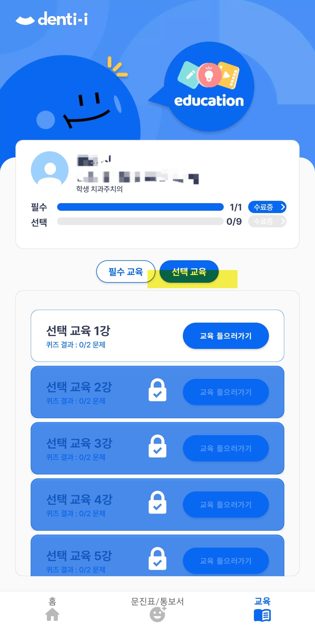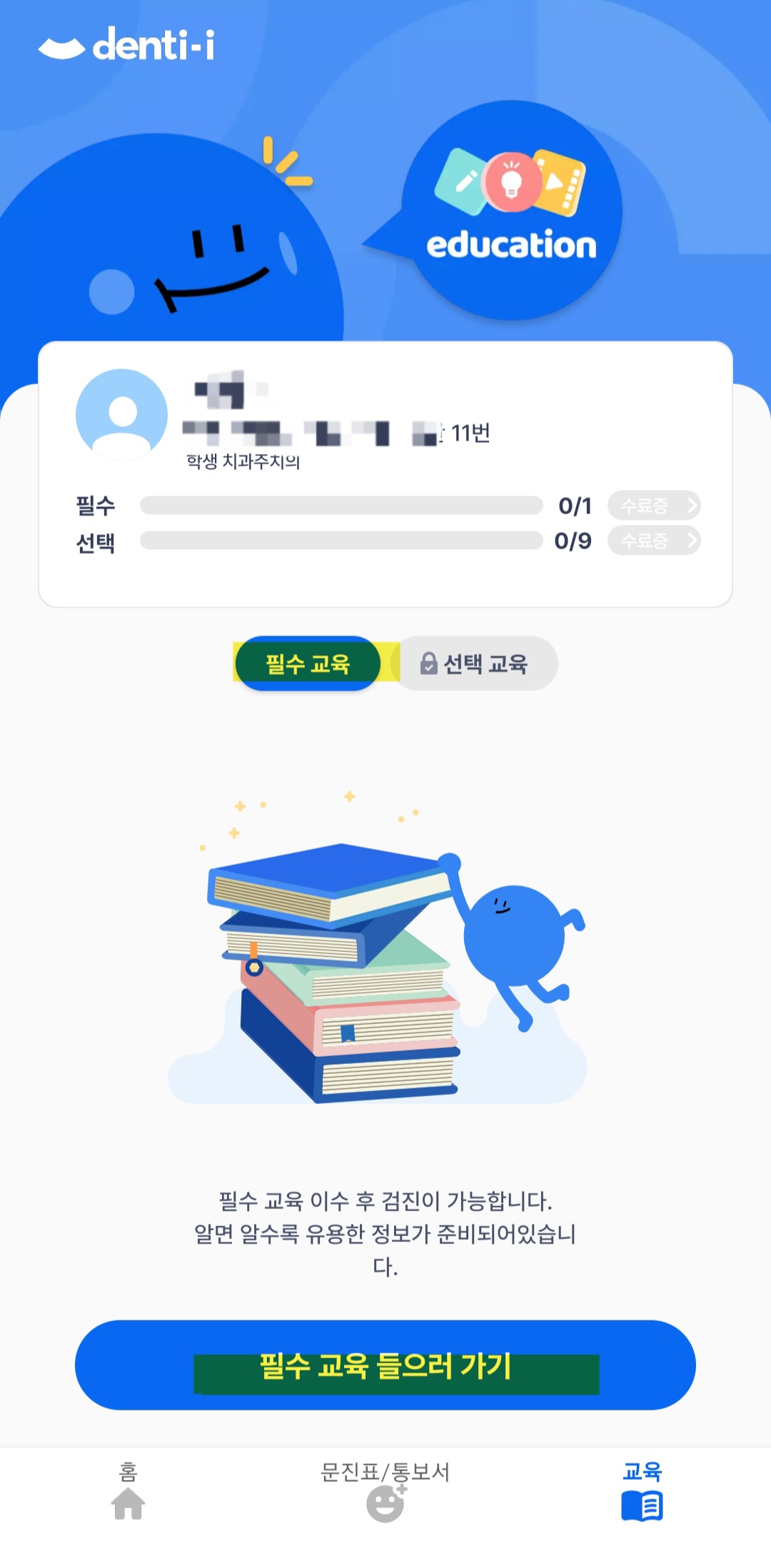 덴티아이를 통해 문진표, 필수교육을 다 받으셨다 해도