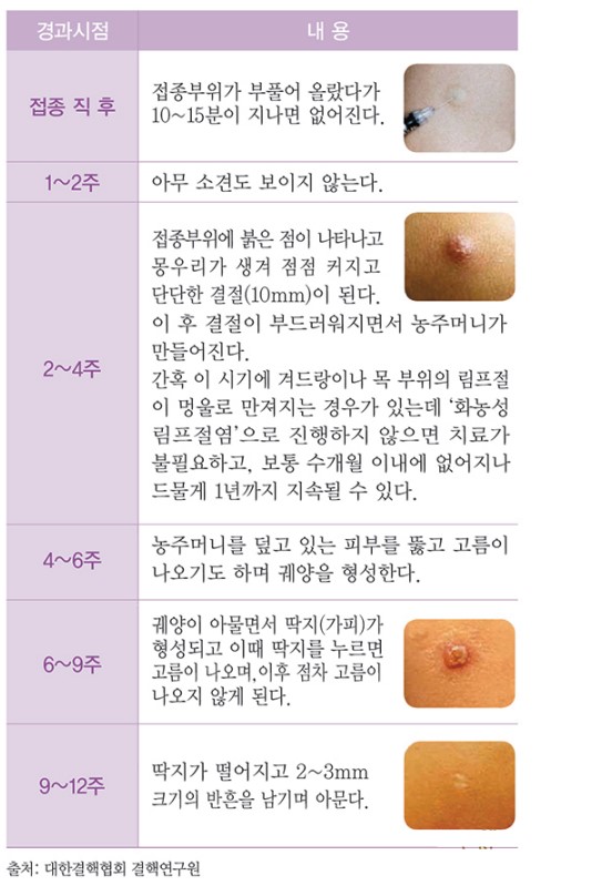 BCG 피내용 예방접종 후 아래와 같은 경과를 잘 살펴보아야 합니다.
